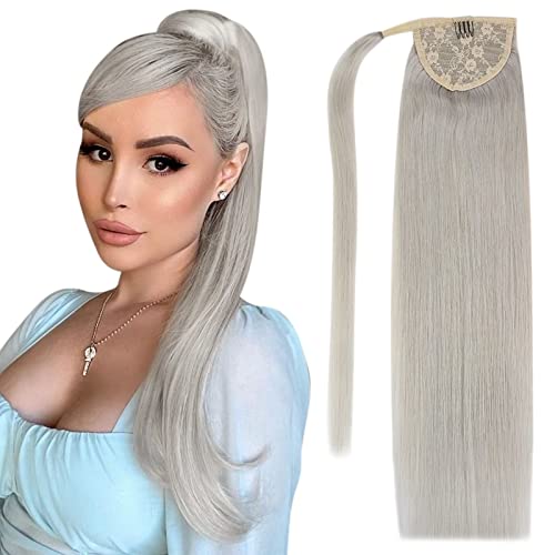Ve Sunny 18inch Ponytail Hair Extensions Human Hair Grey Blonde Wrap Around Ponytail Extensions Blonde Grey Ponytail Hair Extensions With Clips Blonde Grey 80g Color Grey Tamano 18 Inch Guatemala Digital